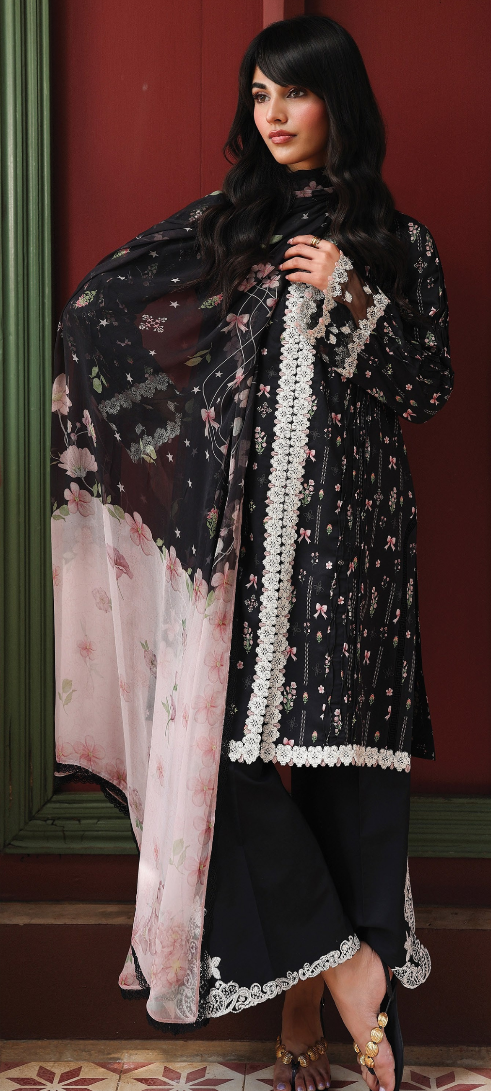 Shirt Digital Printed Front Digital Printed Back Digital Printed Sleeves Embroidered Lace (Front) Embroidered Border (Sleeves) Dupatta Digital Printed Chiffon Dupatta Trouser Plain Trouser Embroidered Motifs (Trouser) Fabric Details Shirt:...