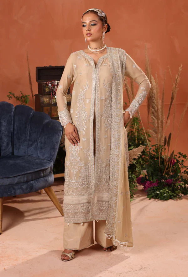 EMBROIDERED CHIFFON FRONT & BACK EMBROIDERED CHIFFON SLEEVES EMBROIDERED ORGANZA FRONT & BACK BORDER EMBROIDERED ORGANZA SLEEVES BORDER EMBROIDERED CHIFFON DUPATTA PLAIN RAWSILK TROUSER PLAIN RAWSILK INNER
