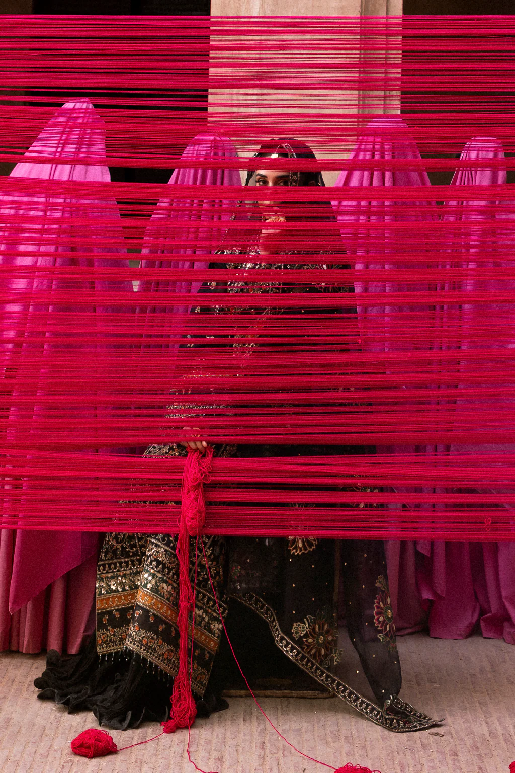 on the frant, back, and sleeves, along with a delicate chalk lace. A raw silk trouser completes