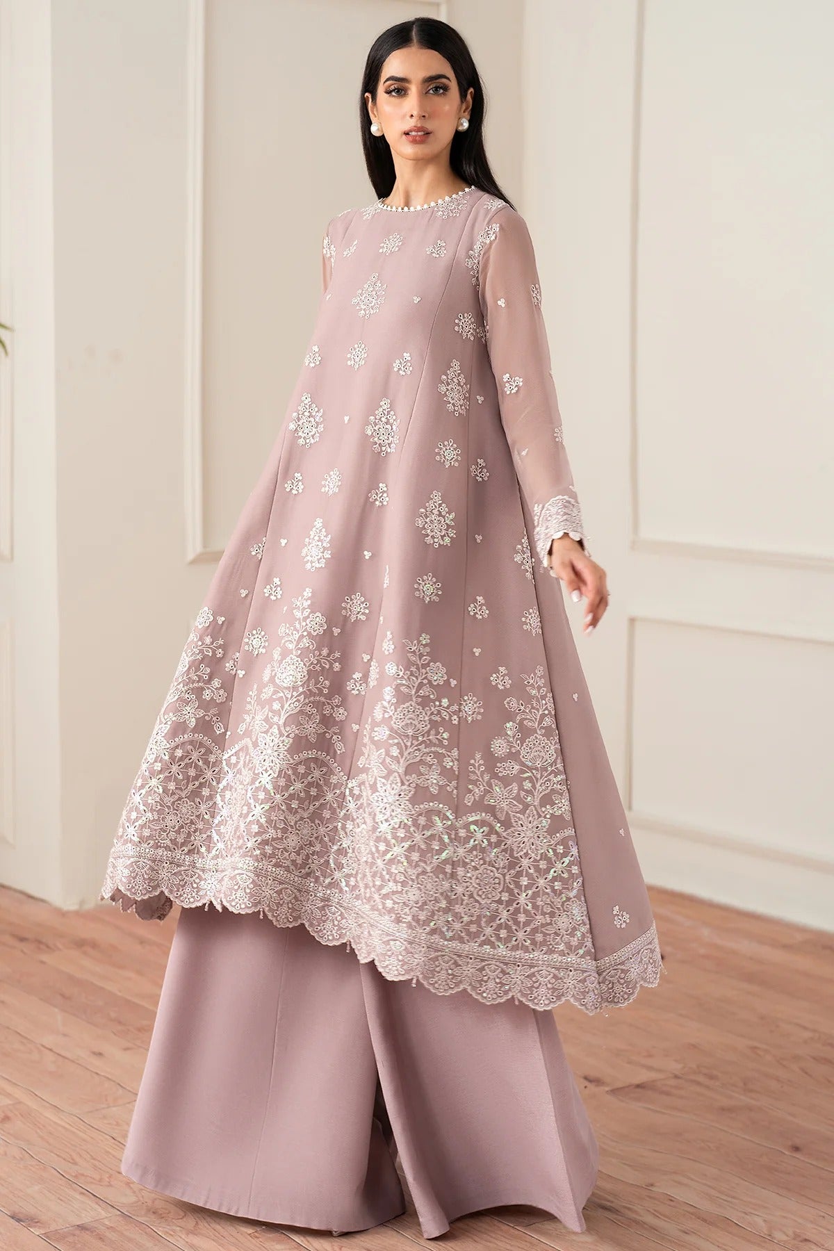 A GENTLE BLEND OF PINK MAUVEBROUGHT TO LIFE WITH INTRICATE OFF-WHITE CHIKANKARIWHICH GRACEFULLY BLOOMS, ECHOING TRADITION WITH A MODERN TOUCH Borer Embroidered Chiffon Front Panels (05)Borer Embroidered Chiffon Back (2...