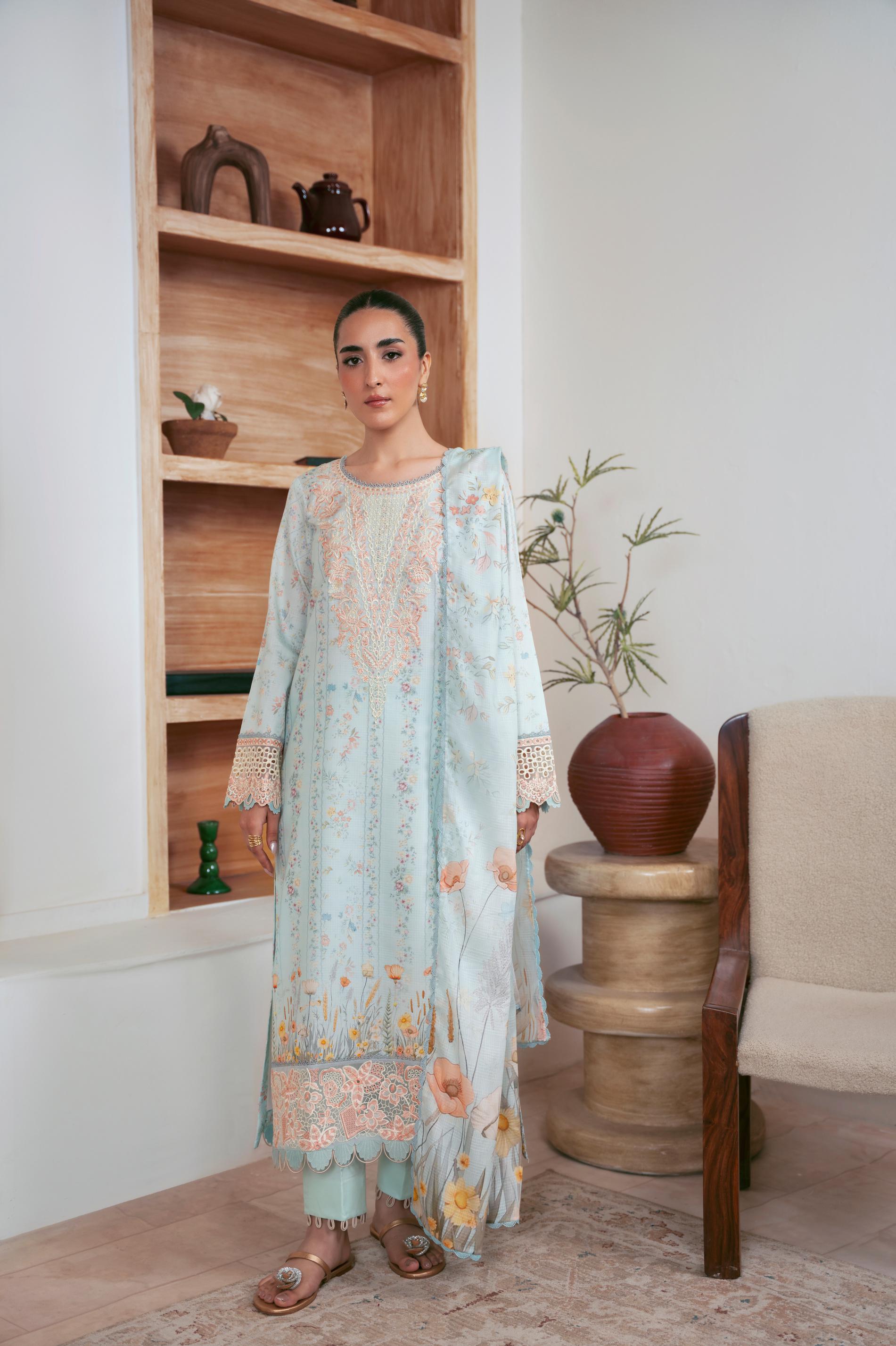 Paired with a dyed trouser and a coordinated dobby printed lawn dupatta, RIHANA offers a perfect blend of comfort and elegance. Whether styled for Eid celebrations, formal gatherings, or graceful daytime parties, this outfit makes a timeless statement.